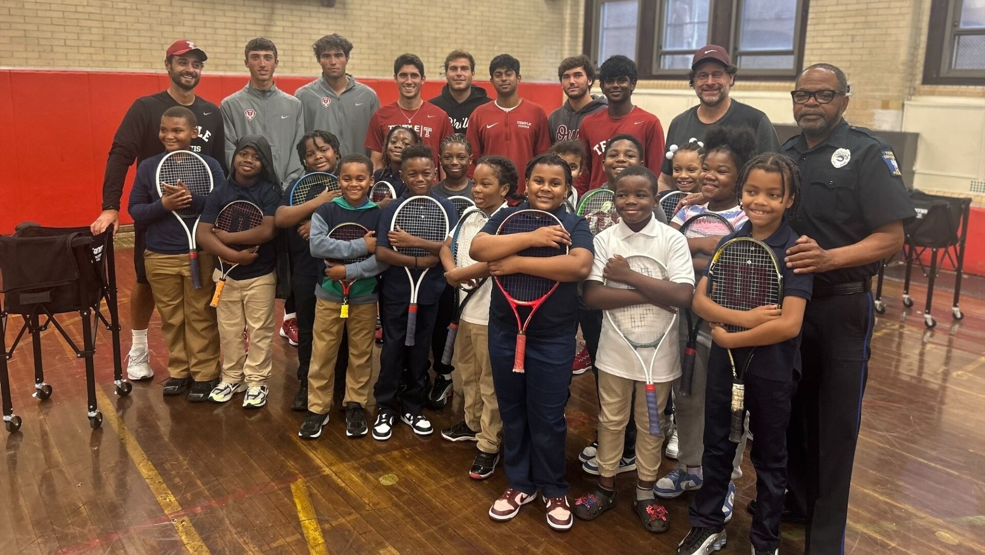 Temple University’s Department of Public Safety made the connection between men’s tennis and Dunbar Elementary School for a weekly tennis clinic.